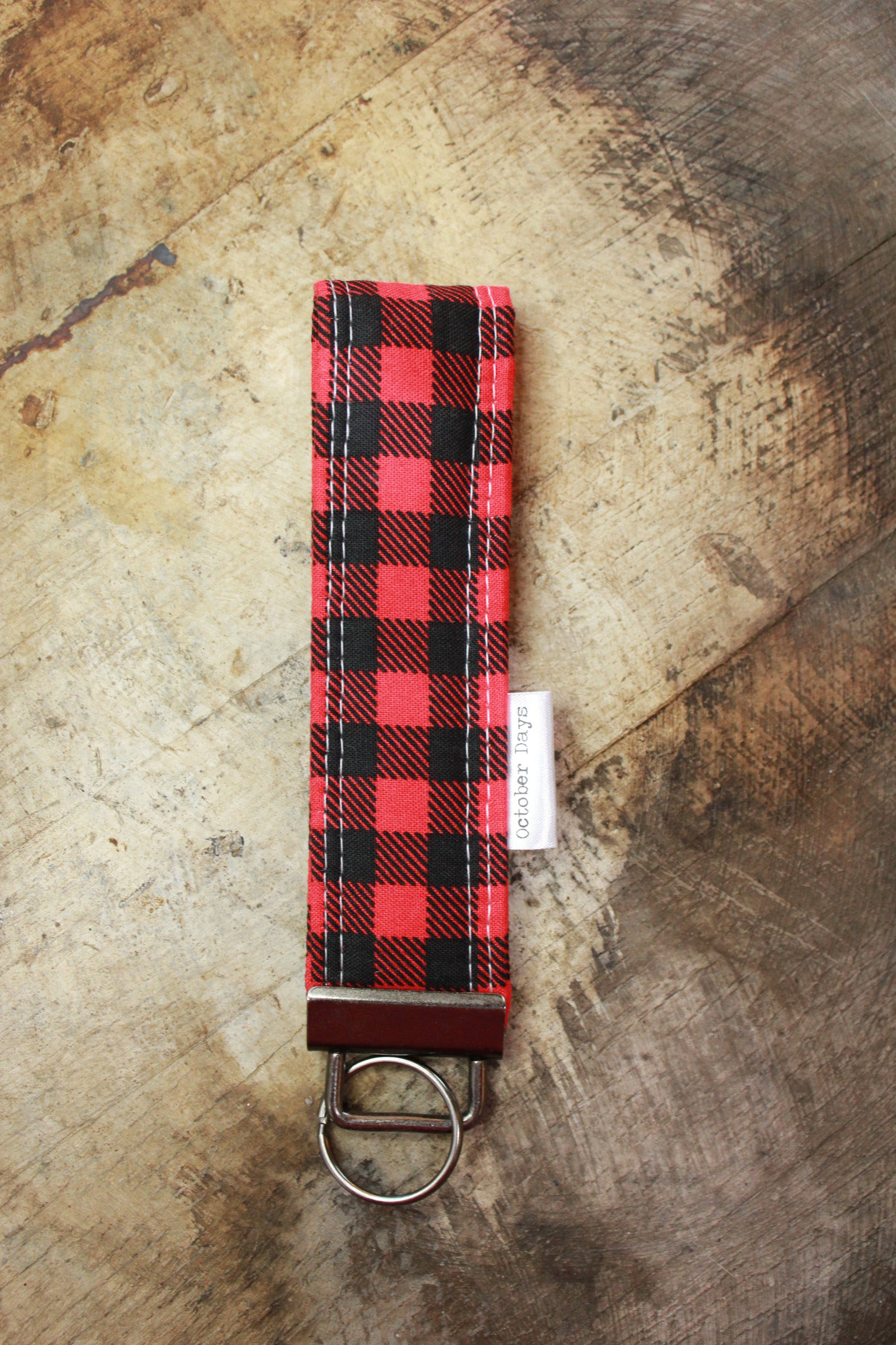 Red Plaid Wristlet Keychain
